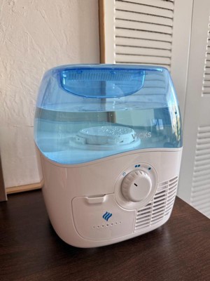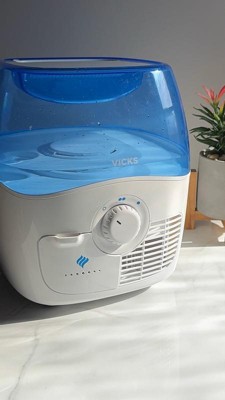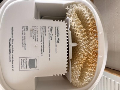 [This review was collected as part of a promotion.] This is a evaporative humidifier meaning that it has invisible moisture and you cant see the mist. I love it because it is so easy to carry and fill the water in it. You should use cold water only for the tank. It has a filter and a tray to use the vicks scent pads if needed. I am using it without them for now and i am impressed with this brand. It is super easy to clean and it is self regulated it adjusts the moisture level by sensing how much humidity is required in the air.