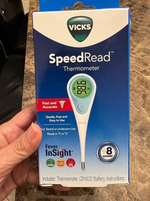 [This review was collected as part of a promotion.] Vicks speed read thermometer works as expected. It shows the temperature fairly quickly and it seems accurate. I like how easy it is to use and it has an easy to see display.