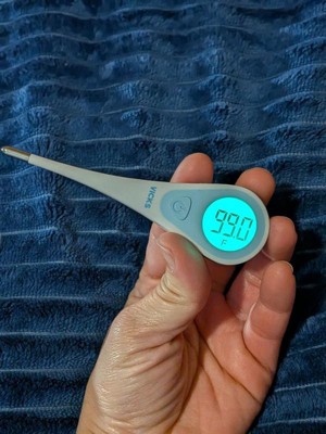 This thermometer has some great features. It reads quickly, which is great (especially with little ones) and why I purchased it. I also love that it lights up to alert you of whether or not you have even a low grade fever. Unfortunately, this doesn’t matter when, like others have said, the thermometer reads inaccurately. I used this thermometer throughout my pregnancy and it always registered my temperature 1-1.5 degrees higher than what my temperature read at the doctor’s office. There’s no way to calibrate it. The other downside is that it doesn’t come with a storage case or cover. If Vick’s would address these issues, this has the potential to be a great product. Until then, I recommend going with a different option.