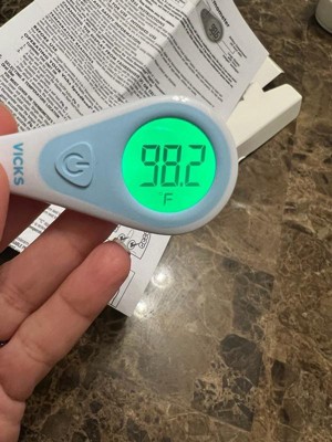 [This review was collected as part of a promotion.] The Vicks thermometer is fast when reading temperature. I was impressed with how quick it reads and signals, nothing compared to my old thermometer. I like that the thermometer is compacted but there is a focus on a bigger visual to read the temperature reading with more ease. I enjoyed that aspect and the color coding. Both are a great idea. It's very easy to use, follow, and understand. Very impressed.