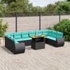 vidaXL 11 Piece Patio Sofa Set with Cushions Black Poly Rattan