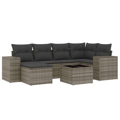 This 7-piece patio sofa set with cushions is the perfect addition to your backyard, terrace, or patio, providing a comfortable and inviting space for relaxing or entertaining outdoors. Available in multiple color options—Brown and cream, Black and cream, Gray, and Beige and cream—and with or without a table, you can choose the configuration that best suits your outdoor space.