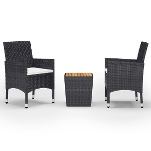Upgrade your patio, balcony, or garden with this stylish bistro set, crafted from durable poly rattan and solid acacia wood. Designed for both comfort and durability, this set is perfect for relaxing outdoors or enjoying intimate meals.