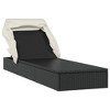 vidaXL Black Poly Rattan Sunbed with Foldable Roof - Adjustable Patio Daybed with Steel Frame and Cream Cushion for Outdoor, Poolside, Balcony