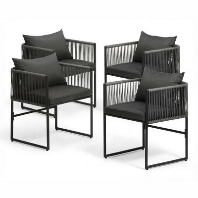 vidaXL Dining Set Black Poly Rattan Medium Removable Covers