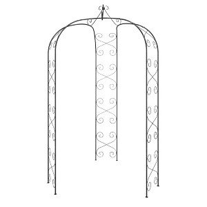 This elegant black garden arch is the perfect addition to any outdoor space, offering both beauty and functionality. Crafted from powder-coated steel, it provides a sturdy and durable structure that is ideal for supporting roses and other climbing plants. Its decorative scrollwork and rounded dome-like canopy create a striking focal point in your garden, patio, or terrace.