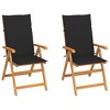 vidaXL Teak Patio Chairs with Black Cushions – Adjustable Reclining Position, Foldable Design, Lightweight, Durable and Weatherproof Outdoor Furniture