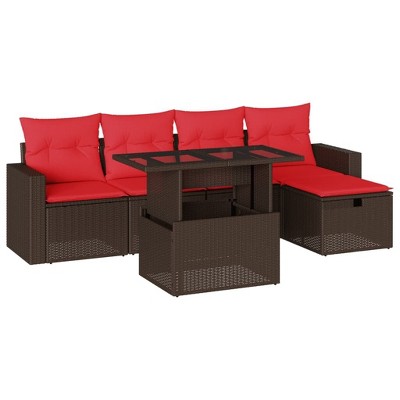 vidaXL Patio Sofa Set with Cushions and Table Outdoor Garden 8 Piece Poly Rattan - Brown