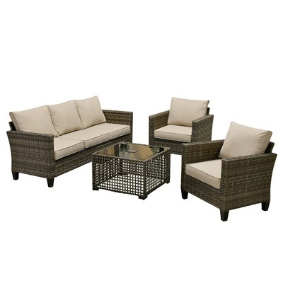 vidaXL Sofa Set Grey Poly rattan Medium Modular Outdoor Sofa Set