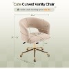 【Stylish Appearance】The allure of this comfy vanity chair lies in its aesthetics. The velvet chenille exudes a sense of luxury and modernity, while the gleaming gold-colored base adds a touch of opulence. The embrace-like shape is both inviting and practical, wrapping you in comfort. No matter if it's placed in a minimalist-styled bedroom, a chic living room, or next to your vanity table, it instantly elevates the ambiance.
