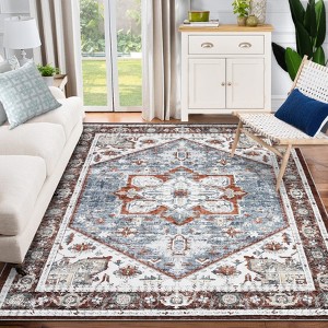 Vintage Boho Floral Area Rug,Machine Washable Rugs Low Pile Ultra-Thin Soft Carpet, Non-Slip Non-Shedding Accent Rug for Living Room, Bedroom