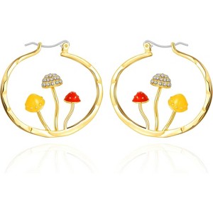 Earrings Material:Large thick gold hoop earrings are made of copper + zircon. Lightweight and durable. Shiny zircon makes you even more dazzling. The unique mushroom anime earrings are easy to wear with a classic buckle closure.