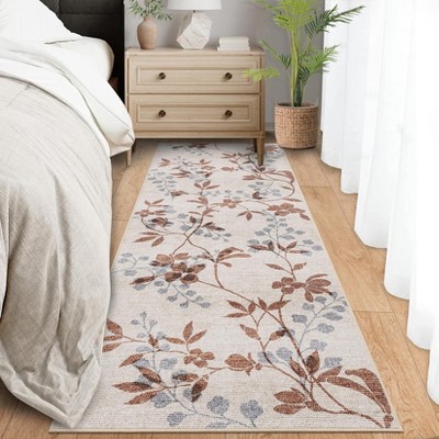 Vintage Washable Rug for Living Room, Distressed Thin Low Pile Non Slip Area Carpet, Classic Modern Accent Rug for Bedroom and Office