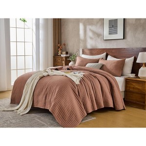 Vintaged Washed Stripe Pattern 3pc Quilt Set Pink King