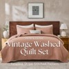 Vintaged Washed Stripe Pattern 3pc Quilt Set Pink Queen