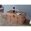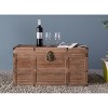 Make your living room feel warm and inviting with these wooden trunks. Studded detail, wooden design, and rustic latch gives your decor collection a rustic spin. Composed out of distressed wood these trunks offer a sturdy holder to keep bedroom or living room items organized . Plus, lined interior and lockable latch provides protection to keep trunk content secure for storage. Declutter and decorate!