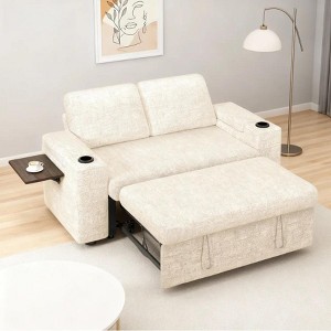 Vipbear 65" Chenille 3-in-1 Convertible Sofa Bed with Reclining Backrest|USB Ports|Cup Holders|Side Table|Storage Armrests