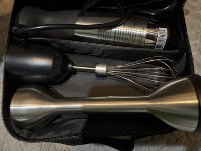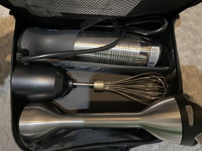 While I have been a vitamix customer for close to 30 years, and expected this immersion blender to deliver and so far ao good with soup. (Just received it today) I am disappointed that the storage bag: 1. It doesn’t tell me what fits 2. It doesn’t fit the Motor body, the blender stick, and the whisk. Only two items fit without risking damaging the others item. Wow! O have to store the whisk elsewhere. The storage bag is a fail.