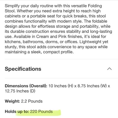 Good value for the price, but the online description is inaccurate. The website says the max weight capacity is 220 lbs, but the sticker on the stool says only 150 lbs.