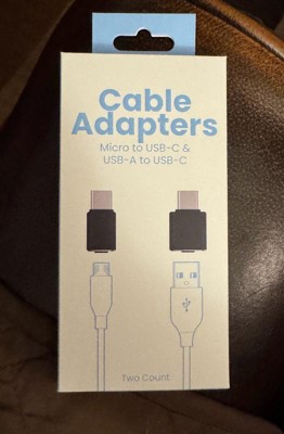 - 2-Pack Cable Adapters: Includes one Micro to USB-C and one USB-A to USB-C adapter.
