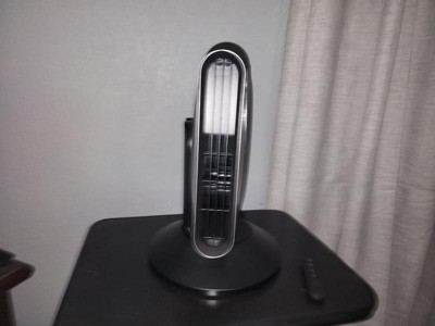 [This review was collected as part of a promotion.] I received this item complimentary for testing purposes for my unbiased opinion. This fan is pretty quiet and oscillates around the room. It comes with a remote control as well as control buttons on the top. It was much larger than I expected and has a stand that you mount the fan on. The only negative I would say about the fan is that the air doesn’t come from the front, it only comes out the side so it limits how I have it on the desk.