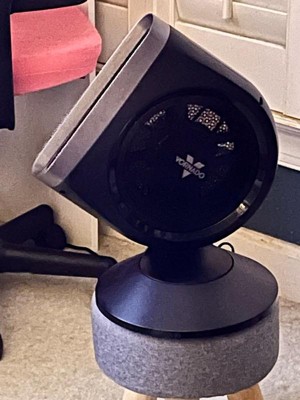 [This review was collected as part of a promotion.] I replaced a box fan with this guy, and he is awesome! I was a bit concerned as my husband needed the noise from the box fan, but it hasn't seemed to bother him. I was also concerned that I wouldn't get enough output since I don't have the full output of an entire square blowing at me (night sweats keep me blowing it in my direction at night) but I have not had an issue. This guy has great output. It has multiple levels, from 1 to 10, and you can keep it stationary as I do or oscillating. It has a base that you screw on and doesn't take up much real estate at all. It can be used inside or out and comes with a remote if needed. Definitely recommend!