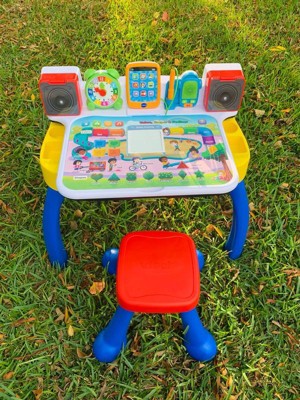 [This review was collected as part of a promotion.] This wholesome toy is everything your toddler needs. It has so many fun activities which helps teach your child like time, how to draw , write with the stylus pen and touch screen pad , learning abc. The sheet in the front is changeable and each sheet is interactive. The size is also perfect for my little one and the sitting stool is surprisingly strong, my elder child sat on it and it held up well , no sign of crack or anything. My toddler has so much fun with it , he keeps on coming back to play .