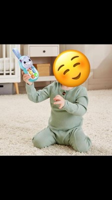 [This review was collected as part of a promotion.] It has easy to press buttons and it each with cute melodies and phone sound effects. My baby loves anything with music, and she loves to press the button and pretend talking on the phone.she is very happy when the toy phone talks back to her :)