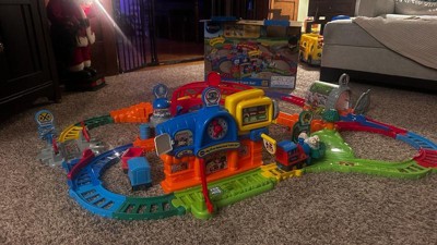 A: Place the Motorized Train on one of the playset’s six SmartPoint® locations to see the Motorized Train’s lights flash and to hear fun sounds, short tunes and phrases