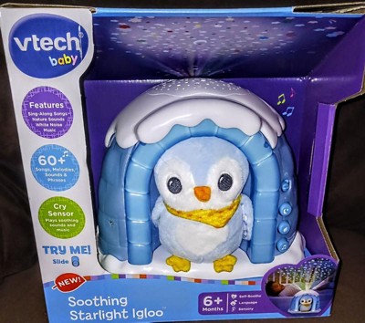 The Vtech Baby Soothing Starlight Igloo and Penguin is a delightful combination of a nightlight, sound machine, and plush toy that captivates children and aids in bedtime routines. With features like a cry sensor, multiple sound options, and a star projector, it creates a calming environment for little ones. Its durable design ensures it withstands playful handling, making it a perfect companion for both playtime and sleep.