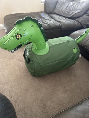 My son received this toy last weekend and since the beginning we noticed that the head was deflating every time. We look and found a ripped on one of the horns. The rest of it is great and my son loves it