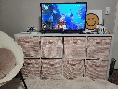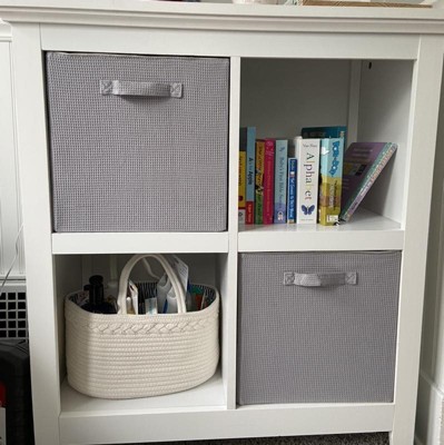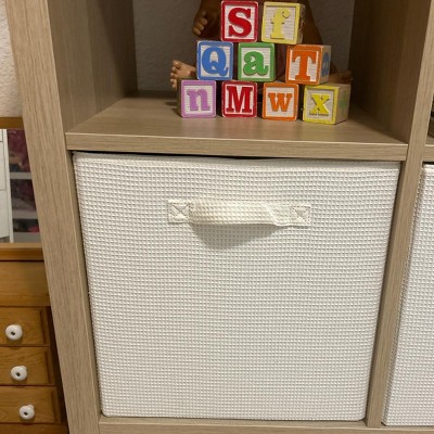 These are the perfect organizers for cube dressers! I turned my TV stand into a baby dresser with these. I love the color and waffle texture.