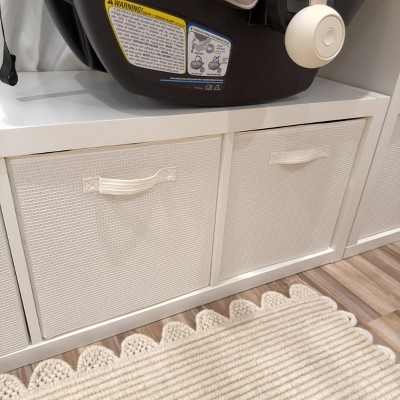 Best best best storage containers! Bought multiple for my babies nursery! The waffle weave is like none other there were matching accessories for the rest of the room. Very sturdy and perfect size! Highly recommend!