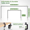 Adjustable metal table arch stand (19"-95"W, 28"-43.5"H) with U-clamps fits tables up to 3.54" thick. Sturdy powder-coated pipes hold 8.8 lbs—ideal for balloons, fabrics & lights. Choose white, black, or pink to match any theme. Perfect for weddings, parties, holidays & vendor booths. Easy setup & storage.