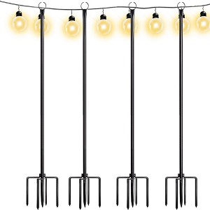 The Walensee String Lights Pole, with 10-inch solid iron ground forks, features superior stability, preventing bending, breaking, or wobbling. Combination of two 4.8FT steel pipes with 1.2mm thickness,the total length of each pole is 9.3 FT, it ensures durability and rust resistance. Easy to install without tools, simply press the forked base into the ground. The adjustable base angle provides extra support. Wide Use for gardens, patios, yards, pools and events, it holds light weight decorations, string lights, garden lanterns, commercial grade lights, fairy lights, and also banners. The recommend installation spacing for each pole is from 12FT to 15ft. Simply two steps to assemble the pole, first to connect poles to secure and then push forks deep into ground for stability. Note: Avoid hanging items that exceed the weight limit or placing in overly soft soil.