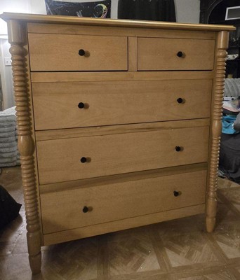 Walker Edison Easy Assembly Solid Wood 5 Drawer Spindle Chest Natural 5-Drawer