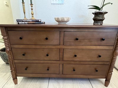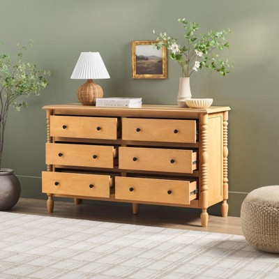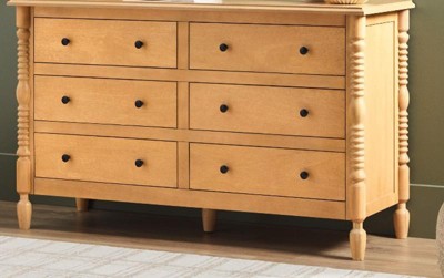 Walker Edison Easy Assembly Solid Wood 5 Drawer Spindle Chest Natural 6-Drawer
