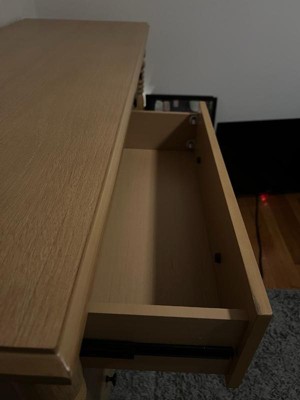 This dresser is beautiful! Assembly was rather straight forward and quick. But, I’m not impressed with how the drawers glide. I purchased this on extreme sale. So, I’m not sure if that’s why? But, I would have hoped that if it was a defective or being sold “as is” that would have been disclosed at time of purchase. I’m hoping my husband can make this piece work as it would be a pain to return. But, the drawers really do have to be forced shut in order for the drawer to be closed fully and line up flush with the rest of the frame. Not very functional for a toddler’s bedroom.