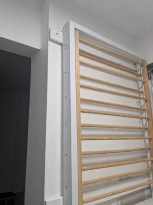 The concept of this is great, but the execution? Not so much. I wanted this to be secure as wet clothes can be heavy, but the drill points missed the studs in my wall. I hung up two 1x3 (painted white to look less obnoxious) and then fastened the rack to those, instead of using the included drywall anchors. (If doing the above, you'll need different screws for hanging up the rack.) Some of the paint was peeling up on arrival, and there was some scuffing, but not the end of the world.