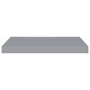 - This modern floating wall shelf adds a stylish touch to any room with its sleek design. Made from hardy MDF, it offers great function while looking good. The grey finish and clean lines give an airy feel, making it great for contemporary spaces like living rooms, bedrooms, or offices, perfect for elegantly displaying books and decor. Floating Design: The shelf's unique style removes visible supports, letting your decorations shine without distractions and adding an airy vibe to your space.Durable Material: Made from solid engineered MDF, this shelf is strong and easy to clean, keeping it looking good and functional for years.Versatile Functionality: Great for all sorts of settings, this shelf is fab for displaying books, awards, or artsy decor, making it a flexible addition to any room.Space-Saving Solution: Wall-mounted so it saves valuable floor space while providing loads of storage ¨C perfect for smaller living areas.Easy Installation: Comes with all the bits and bobs needed for a straightforward setup, letting you enjoy your new shelf hassle-free. Color: Grey Shape: RectangularMaterial: Wood MDFFinish: Matte Indoor/Outdoor: Indoor OnlyCover Included: NoRoom: Living RoomCapacity: 15.4 lbsMaximum Weit: 15.4 lbsMounting Included: YesDimensions: 9.3 x 23.6 x 1.5 in (W x L x H)Surface Height: 1.5 inWeight: 3.53 lbsLadder: NoDelivery Contains: Floating wall shelfAssembly Required: YesRecommended Number of People for Assembly: 1