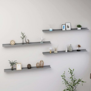 - This wall shelf set is an elegant way to spruce up any living room or bedroom. Its sleek design and modern grey finish offer a chic backdrop for showing off books, plants, or decorative pieces, blending style with function for any interior. Revamp any room with these floating shelves that blend decor and storage beautifully. Their minimalist style lets you place them anywhere while providing practical storage without taking up floor space.Each shelf measures 39.4 in long, 3.5 in wide, and 1.2 in high, crafted to support up to 11 lbs. They¡¯re perfect for showcasing lightweight items, from keepsakes to daily essentials, making an elegant display.The grey MDF construction not only looks good but is super durable, easy to keep clean with a damp cloth and strong enough for everyday use.Ideal for living rooms or bedrooms, these shelves cater to various decorative needs, enhancing functionality without losing style.Delivered as a complete set of four floating shelves, they¡¯re designed for easy installation and make a huge difference in your home decoration by saving floor space and creating a neat look. Number Of Items: 4Color: GreyShape: RectangularMaterial: Wood MDFFinish: MatteIndoor/Outdoor: Indoor OnlyCover Included: NoRoom: Living RoomCapacity: 11 lbs per shelfMaximum Weit: 11 lbsMounting Included: Wall / ceiling fixtures - eg specific screws or wall plugs - not includedDimensions: 3.5 x 39.4 x 1.2 in (W x L x H)Surface Height: 1.2 inWeight: 9.37 lbsLadder: NoDelivery Contains: 4 x Wall shelvesAssembly Required: YesRecommended Number of People for Assembly: 1