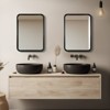 Sleek Design: 18" x 24" rectangular wood bathroom mirror with a modern black frame, perfect for farmhouse-inspired vanities.