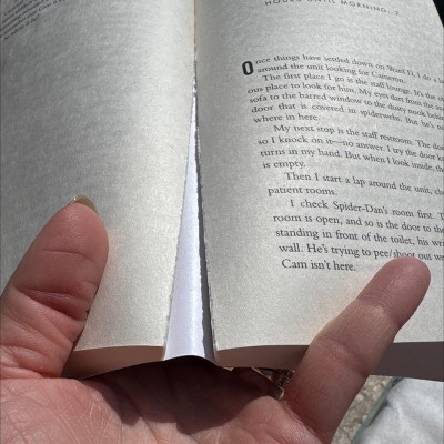First of all, from a quality control perspective, my first reading this book and the pages are coming away from the spine. It has been in no way compromised on my end. Disappointed in the quality from target. Second, the book is awful. I cannot believe the good reviews. It’s so poorly written, there is zero character development, and the whole thing is so unrealistic, it’s maddening. It doesn’t even make sense. I’m annoyed I wasted money on this for both quality of the product and quality of the read.