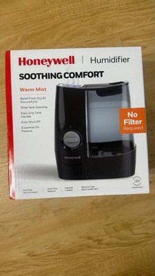This Honeywell Warm Mist humidifier delivers a soothing warm mist to provide relief from dry air discomforts. Quiet, filter-free operation allows long-lasting use without the costs of replacing a filter. Essential oil feature allows use with your favorite essential oils or with liquid inhalants. Essential oils sold separately.