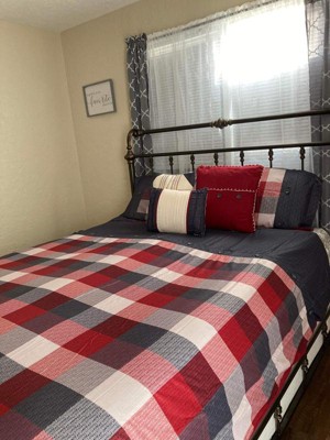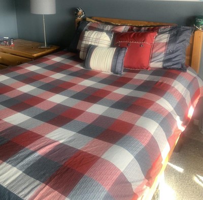 [This review was collected as part of a promotion.] This duvet cover set is really nice. The plaid pattern is not too busy and the colors are really nice. It comes with three throw pillow that coordinate with the shams and duvet cover. This provides a whole new look for our guest bedroom.