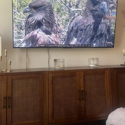 I pushed together three of these cabinets under my TV as a makeshift “TV stand” and wow it is gorgeous. My only complaints are about the assembly which was a bit complicated when it came to the doors, and the inconsistency across pieces (shade of wood varies and some doors hinge higher than others). Also for some reason two of the cabinets I received will not sit flush together so I had to rearrange them. All in all, beautiful high-quality looking piece with decent storage inside.