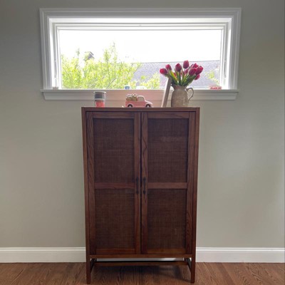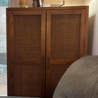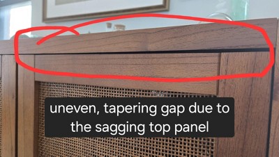 For anyone who doesn’t want to read more than one sentence, here's the bottom line: this is a wobbly cabinet with flimsy wood-veneer particle board panels, and it’s not worth the premium price. It’s crazy to me that this cabinet has received so many 5-star reviews. Target has other flatpack furniture that’s surprisingly nice quality, but this is not one of those pieces. Yes, it looks pretty, but it's not engineered any better than your typical $50 DIY cubby you'd buy for a dorm. It's just a particle board box held together with a few screws, some dowels, and hopes and prayers. They claim it has a “hardwood frame.” Is the hardwood frame in the room with us now? And did I mention that the shelves sag when loaded with even a moderate amount of weight? And OMG, the doors! They each have three adjustable concealed hinges. If you’ve ever dealt with these kinds of hinges before, you already know how annoying it can be to adjust them. Two is bad enough; having to work with three is cruel and unusual punishment. I've never wanted to yeet a piece of furniture out a window so badly. It must have taken me over an hour and a half to get the doors to close properly. A little backstory: I decided to rent one of those trendy downtown apartments in a historic building, but the settling that’s occurred over the last century or so has caused the floors to become uneven. Because the cabinet is so wobbly, I didn’t realize the uneven floors were causing the frame to go slightly out of square. This made it impossible to properly adjust the position of the doors, and it took me entirely too long to figure out what was going on. I had to move it into the spot I wanted and then adjust the feet to get it to sit right before I could finally get the doors to close properly, but they’re still not entirely right. I have the lateral adjustment screws on the hinges maxed out (the ones that adjust the gap between the doors), and I’m still left with a ¼” space between them. This shows that the doors are too narrow to begin with to properly close the gap. Bonus: one of the rattan panels on one of the doors had some damage. However, I’ve convinced myself that it adds character. Am I going to keep it? Begrudgingly, yes. After schlepping it from the mailroom to my apartment and enduring the trials and tribulations of the assembly process, I’ve formed a trauma bond with it and can’t bring myself to return it. Plus, the box it came in looked like it had gone through all seven circles of Heck. And, like I said at the beginning of this review, it is cute or whatever. This cabinet needs to be priced significantly lower than the $350 it’s currently at. If it were half that price, I might be more forgiving of its flaws, but at this cost, I expected way better quality. Buyer beware: you're paying for the aesthetic, not the engineering.