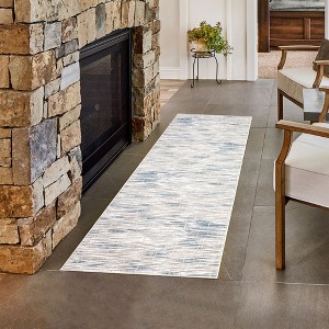 2'x6' Washable Runner Rug Modern Striped Abstract Rug Soft Non Slip Bedroom Runners Low Pile Stain-Resistant Rug, Gray/Blue
