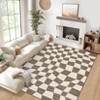 Washable Modern Checkered Area Rug | Stain Resistant Soft Geometric Throw Rug | Non-Slip Low Pile Accent Carpet for Living Room, Dining, Nursery