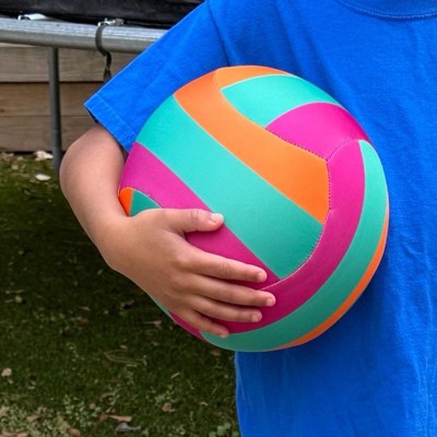 This is a nice size volleyball for outside fun. I love that it’s not heavy like a regular volleyball. My 8 year old daughter likes that she can play with it outside the pool but if it falls in it won’t get messed up. It’s a good size and drys pretty quickly. The colors are also very bright so it’s easy to spot in the water.